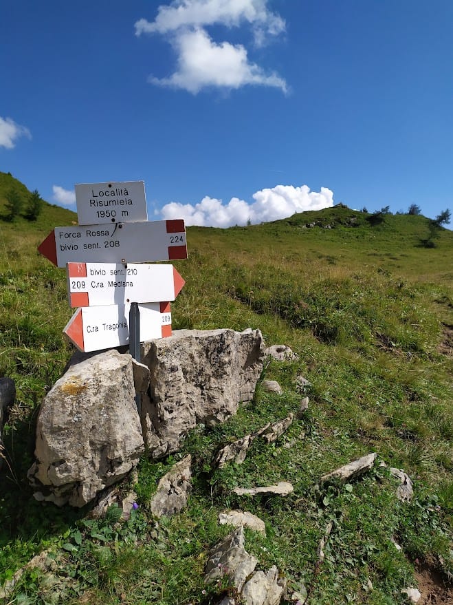 Da Malga Tragonia è possibile proseguire verso Forca Rossa e chiudere il giro facendo un anello che riporta a Malga Casera Razzo.