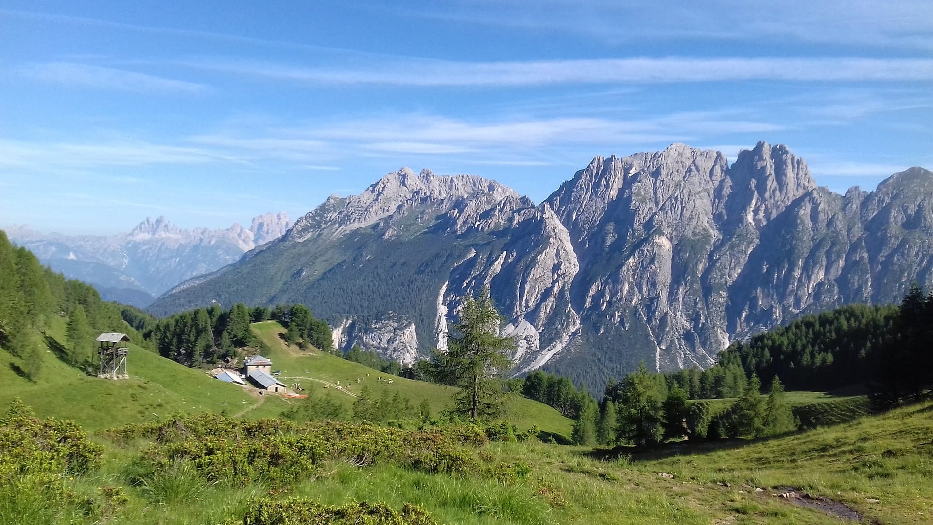 Da Sella Ciampigotto sulla SP 619, proprio nei pressi del cartello stradale (arrivando da Laggio sulla destra) una tabella indica un sentiero in discesa (segnavia CAI 337). Si supera località Valdescosa e sempre in discesa si giunge in località La Pissa. Qui il segnavia CAI diventa 338, si supera il torrente Piova tenendo la sinistra al bivio (a destra si torna sulla SP 619), e il percorso inizia a salire in maniera costante. Si rimane sempre sulla strada sterrata (segnavia CAI 338), si supera il torrente Rio della Ruoiba e poco dopo si giunge a Casera Doana. Il ritorno avviene per il percorso dell’andata.