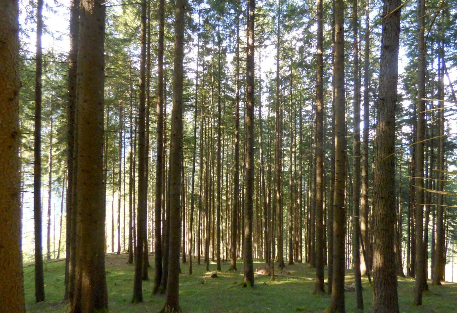 Dal cimitero di Vigo si prende il sentiero nel bosco che si intravede a sinistra se ci fermiamo davanti al cancello principale. Il sentiero, inizialmente in discesa e poi in continuo saliscendi, si snoda in un bellissimo bosco di alberi dai fusti altissimi e drittissimi. Quando si esce dal bosco ci i trova nei prati nei pressi di Roncole, con un panorama sui gruppi montuosi principali e sulla vallata del Centro Cadore. Da Roncole si ignora il sentiero a destra che porta alla chiesa di Vigo e si tiene la sinistra, tornando verso il cimitero e chiudendo così l’anello.